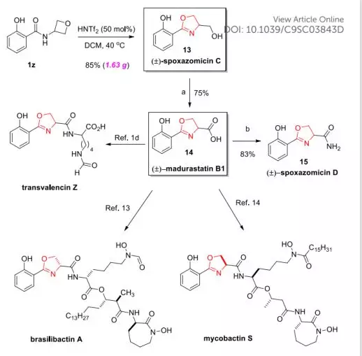 近日,香港科技大學(xué)孫建偉團(tuán)隊(duì)開(kāi)發(fā)了一種新的溫和催化方法用于從氧雜環(huán)丁烷合成噁唑啉,從而能夠快速獲得多種天然產(chǎn)物,該成果發(fā)表于近期Chem. Sci.(DOI: 10.1039/C9SC03843D)。...