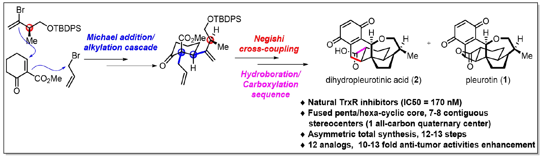 (?)-Pleurotin (1)和(+)-dihydropleurotinic acid (2)是從真菌中分離得到的苯醌類雜萜,具有強(qiáng)效廣譜的抗腫瘤和抗菌活性。特別是,(-)-pleurotin (...