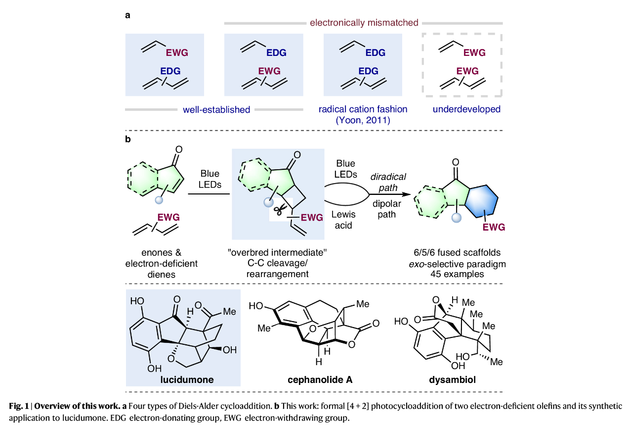 Diels-Alder環(huán)加成反應(yīng)是一類經(jīng)典且實(shí)用的 [4+2]成環(huán)反應(yīng),被廣泛應(yīng)用在復(fù)雜分子的合成中。該反應(yīng)的發(fā)生一般需要使用較富電子的雙烯和較缺電子的親雙烯體作為反應(yīng)的底物。相對(duì)而言,電性不匹配的D...