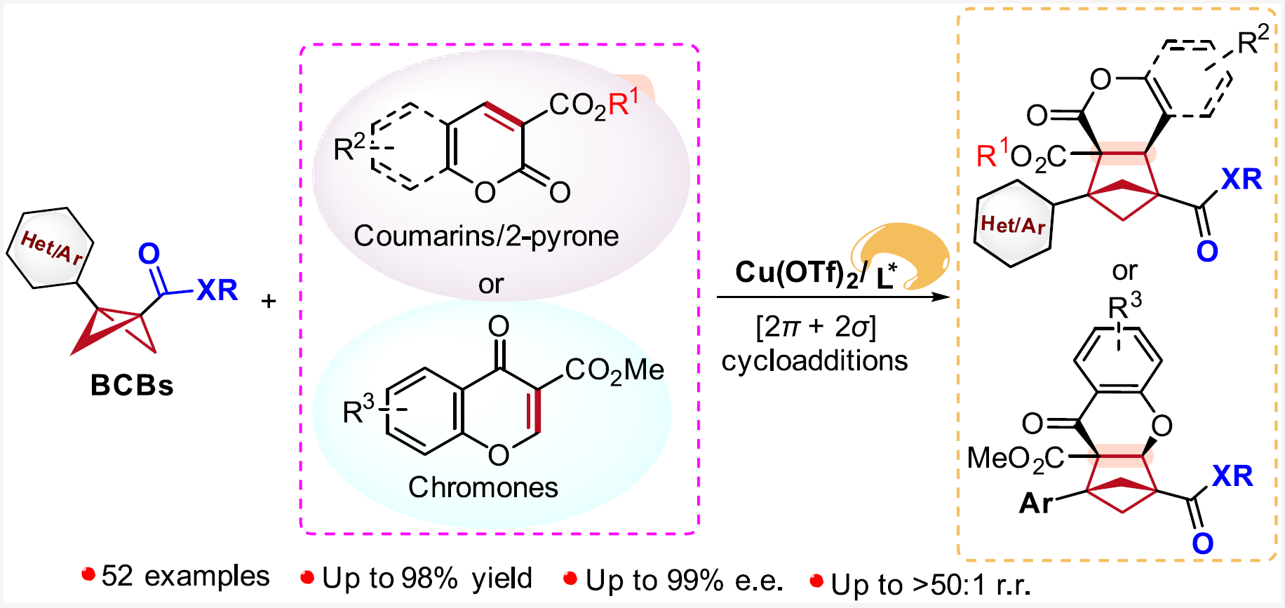 近日,清華大學(xué)深圳國際研究生院/深圳灣實(shí)驗(yàn)室蔣宇揚(yáng)團(tuán)隊(duì)、南方科技大學(xué)劉心元團(tuán)隊(duì)和清華大學(xué)深圳國際研究生院林進(jìn)順團(tuán)隊(duì)報(bào)道了路易斯酸催化雙環(huán)[1.1.0]丁烷(BCBs)分別與香豆素、2-吡喃或色酮等的不...