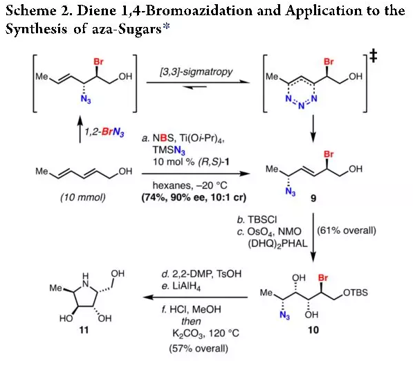 近日,斯坦福大學(xué)Noah Z. Burns教授課題組在JACS上報(bào)道了對烯丙醇具有高區(qū)域選擇性和立體選擇性的“鹵化-疊氮化”加成反應(yīng)。該反應(yīng)適用范圍廣,氯與溴均可參與反應(yīng)。同時(shí),鹵素與疊氮基可進(jìn)一步轉(zhuǎn)...