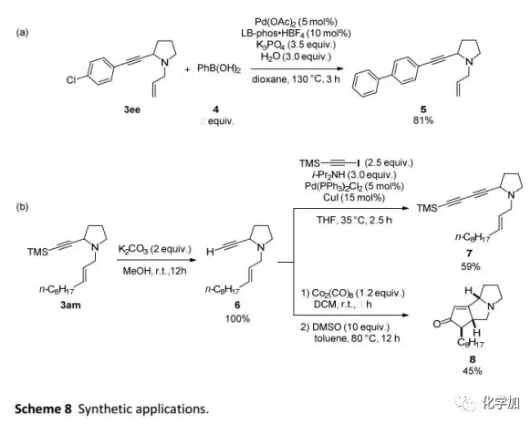 近日,麻生明院士課題組在Chem. Sci.報(bào)道了一種高度立體選擇性的N-炔丙基環(huán)胺的α-炔基化方法(eq. 3),通過用CdBr2(或ZnI2)催化劑可以得到N-(E)-烯丙基2-炔基環(huán)胺(DOI:...