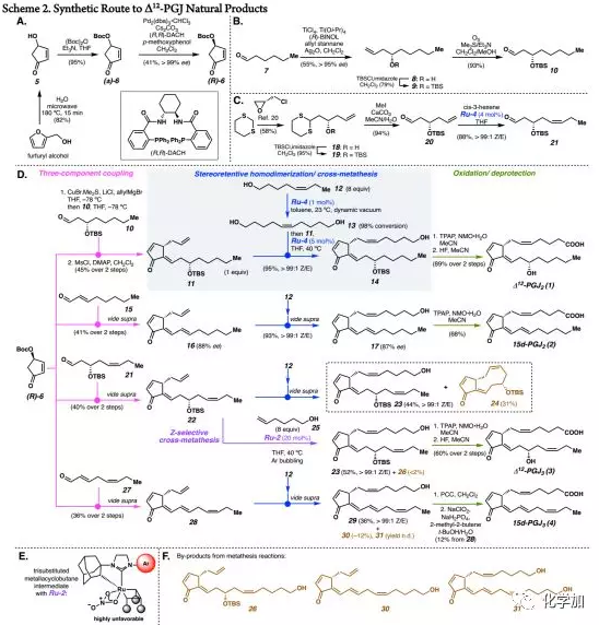 近日,加州理工學(xué)院Robert H. Grubbs和Brian M. Stoltz教授與南方科技大學(xué)徐晨等人通過利用簡明的立體控制的烯烴復(fù)分解策略完成了富含烯烴的Δ12-前列腺素J類天然產(chǎn)物1-4的全...