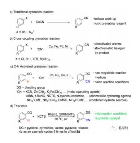 近日四川大學(xué)華西藥學(xué)院吳勇課題組報(bào)道了在溫和高效、可回收的Cp*Rh(III)/ILs催化體系下的C-H鍵氰化策略。相關(guān)文章以“Rhodium-Catalyzed Direct CH Bond Cya...