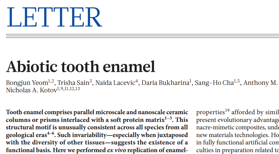 牙釉質(zhì)是自然界中最有標(biāo)志性的天然復(fù)合材料,它既堅(jiān)硬又有韌性,是一種可遇不可求的多功能材料,如能夠通過(guò)人工合成,其用途會(huì)非常廣泛。牙釉質(zhì)間的釉柱是它堅(jiān)固的基石,但在人造復(fù)合材料中,類似于釉柱的“垂直”結(jié)...