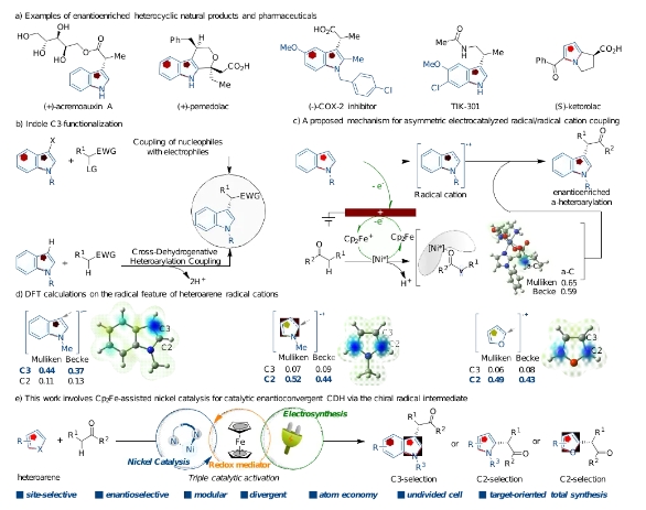 手性的雜環(huán)化合物在全合成、制藥、農(nóng)用化學品和材料科學方面具有許多重要的應(yīng)用價值(圖1a)。α-雜芳環(huán)羰基框架具有獨特的結(jié)構(gòu)性質(zhì),在許多生物活性化合物中具有突出特征。因此,從簡單易得的雜環(huán)化合物出發(fā),直...