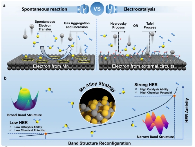 研究團隊針對水系錳離子電池中嚴重的析氫問題,通過負極的合金化策略,對其能帶結(jié)構(gòu)進行調(diào)控,闡明了該問題源自于金屬錳與電解液的自發(fā)反應(yīng)?;诖碎_發(fā)出的MnP合金負極,具備較強的析氫抑制能力,使對稱電池循環(huán)...