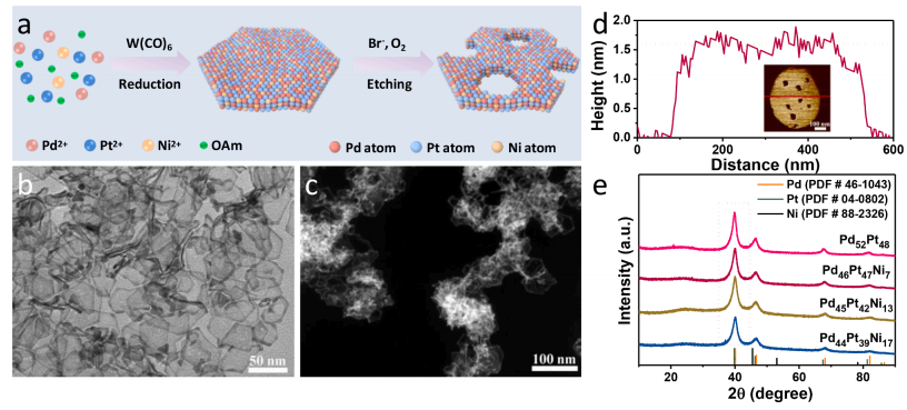超薄多孔納米結(jié)構(gòu)的發(fā)展為優(yōu)化電催化劑的活性和穩(wěn)定性提供了新的契機(jī),特別是對于復(fù)雜的醇氧化反應(yīng)(AORs)。本文創(chuàng)制了一系列具有可調(diào)成分的多孔PdPtNi納米片,在堿性電解質(zhì)中實現(xiàn)了對甲醇和乙醇氧化反應(yīng)...