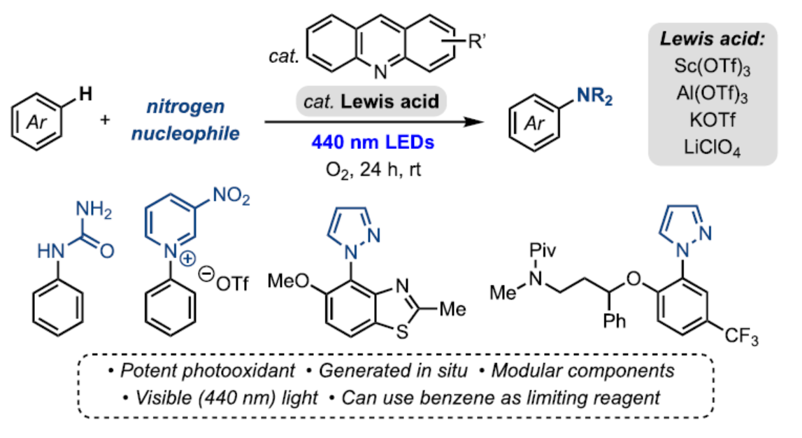近日,美國密歇根大學(xué)Melanie S. Sanford課題組報道了一種可見光光催化C(sp2)?H鍵的胺化反應(yīng)。其中,通過吖啶衍生物與Lewis酸的組合形成了強(qiáng)大的光氧化劑,在可見光(440 nm)...