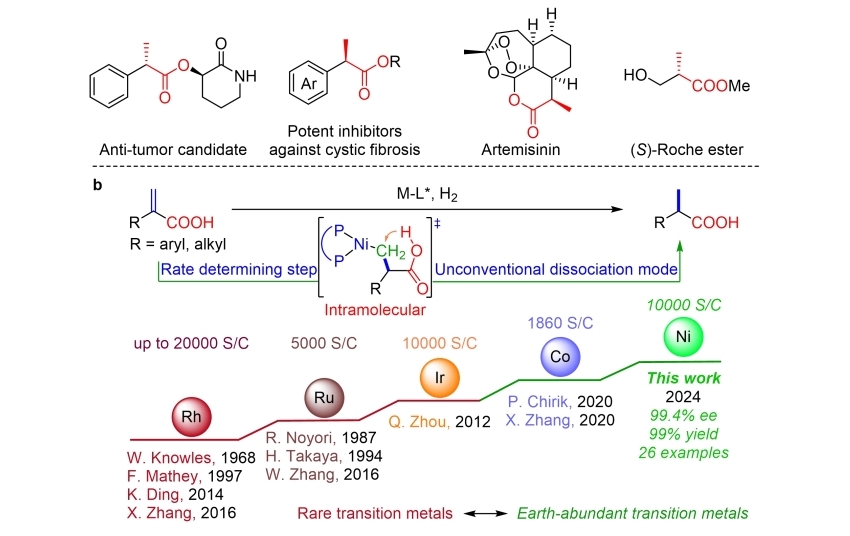高效、綠色、廉價的反應(yīng)體系一直是化學(xué)家們在過渡金屬催化不對稱氫化領(lǐng)域內(nèi)的不懈追求。近日,上海交通大學(xué)張萬斌教授課題組報道了一種豐產(chǎn)金屬鎳催化α-取代丙烯酸的不對稱氫化反應(yīng),高效地合成了一系列手性α-取...