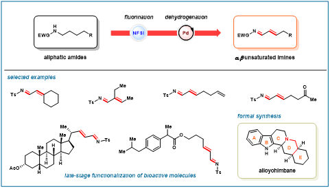 由于脂肪族亞胺容易水解和二聚,通過(guò)脂肪族亞胺的脫氫反應(yīng)合成α,β-不飽和亞胺具有較大的挑戰(zhàn)性。近日,東北師范大學(xué)傅俊凱教授與關(guān)威教授合作,開(kāi)發(fā)了一種鈀催化脫氫合成α,β-不飽和亞胺的方法,該方法具有良...