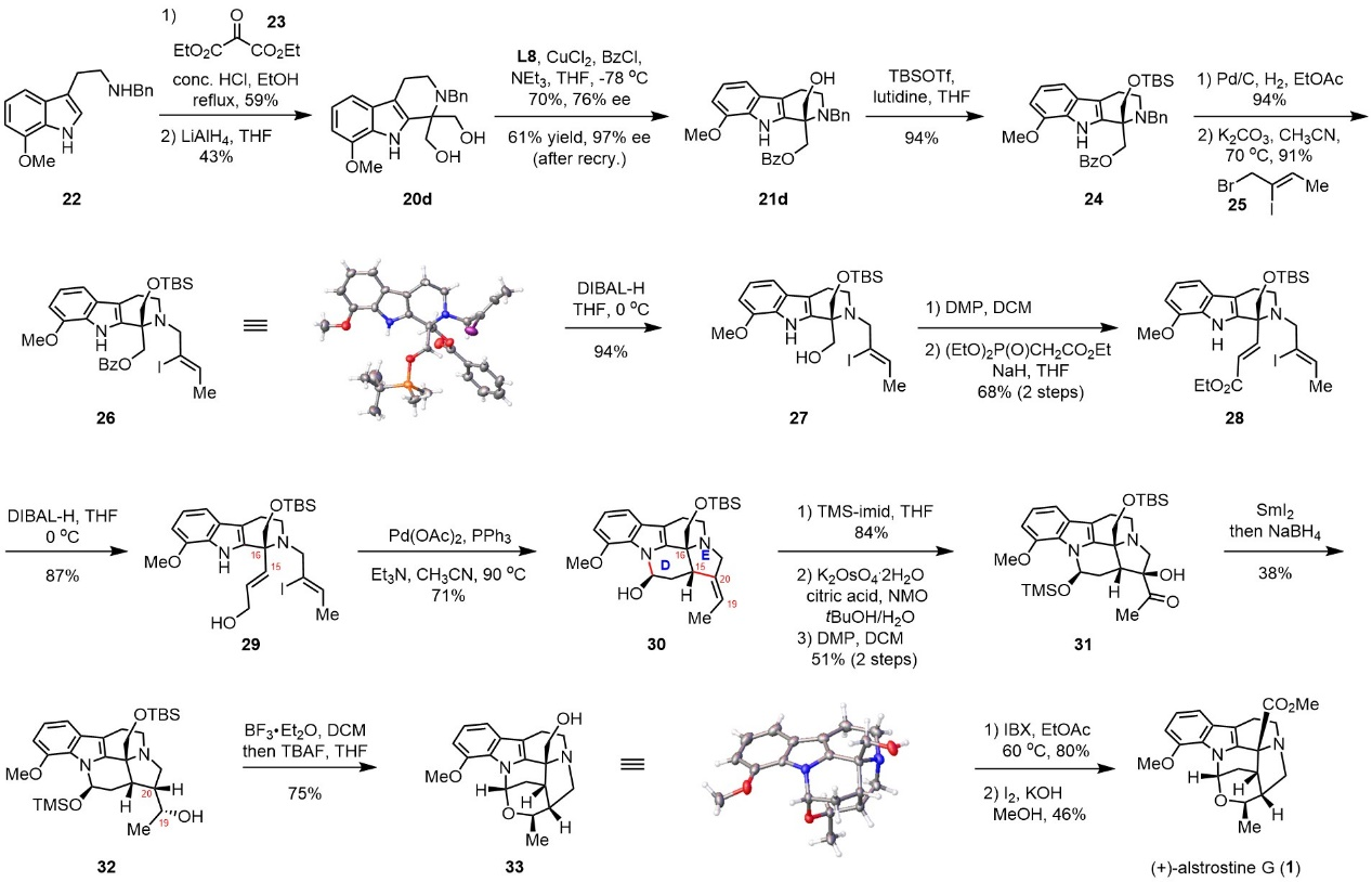 近日,華南理工大學(xué)的馬志強(qiáng)課題組,開(kāi)發(fā)了一種環(huán)狀1,3-二醇催化不對(duì)稱的去對(duì)稱化策略,構(gòu)建了含氮雜季碳β-咔啉骨架;并通過(guò)串聯(lián)的Heck/半胺化反應(yīng),一步構(gòu)建D/E環(huán)系,實(shí)現(xiàn)了(+)-alstrost...