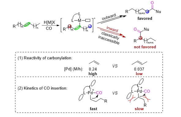烯烴的羰基化反應(yīng)是有機(jī)合成中的重要基礎(chǔ)反應(yīng)之一。烯烴的異構(gòu)化-羰基化是將烯烴先異構(gòu)化為新的烯烴然后再進(jìn)行羰基化的反應(yīng),該類反應(yīng)可直接將烯烴的不同異構(gòu)體混合物轉(zhuǎn)化為單一的羰基化產(chǎn)物,在有機(jī)合成中具有重要...