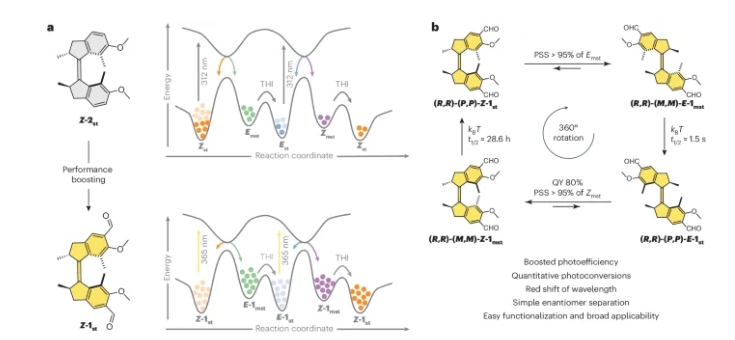 分子機(jī)器和分子馬達(dá)在生物系統(tǒng)中廣泛存在,并且在視覺、細(xì)胞間傳輸、能量轉(zhuǎn)換等過程中發(fā)揮著關(guān)鍵作用。然而,設(shè)計高效率和選擇性的光驅(qū)動分子馬達(dá)仍然極具挑戰(zhàn)。 因此,科學(xué)家嘗試從自然界中汲取靈感,設(shè)計和...