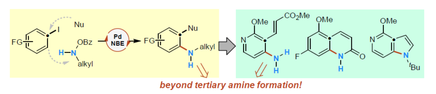 自2013年報(bào)道的鈀/降冰片烯(Pd/NBE)催化鄰位胺化反應(yīng)以來(lái),在過(guò)去十年中,此類反應(yīng)主要集中于三級(jí)苯胺的合成,對(duì)于其它類型苯胺的合成則一直具有挑戰(zhàn)。近日,美國(guó)芝加哥大學(xué)董廣彬課題組利用一種合適的...