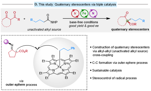 含有季碳手性中心的化合物廣泛存在于醫(yī)藥、農(nóng)藥等精細(xì)化學(xué)品中,因此季碳手性中心的對(duì)映選擇性構(gòu)筑十分重要。公開數(shù)據(jù)顯示,2022年小分子藥物銷售額排名前200的榜單中,10%左右的分子含有季碳手性中心。然...