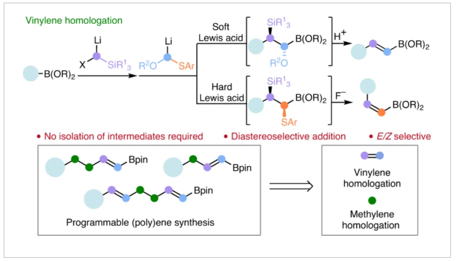 近日,美國(guó)芝加哥大學(xué)(University of Chicago)董廣彬課題組與美國(guó)匹茲堡大學(xué)(University of Pittsburgh)劉鵬課題組報(bào)道了烷基和芳基硼酸酯的立體選擇性亞乙烯基同...