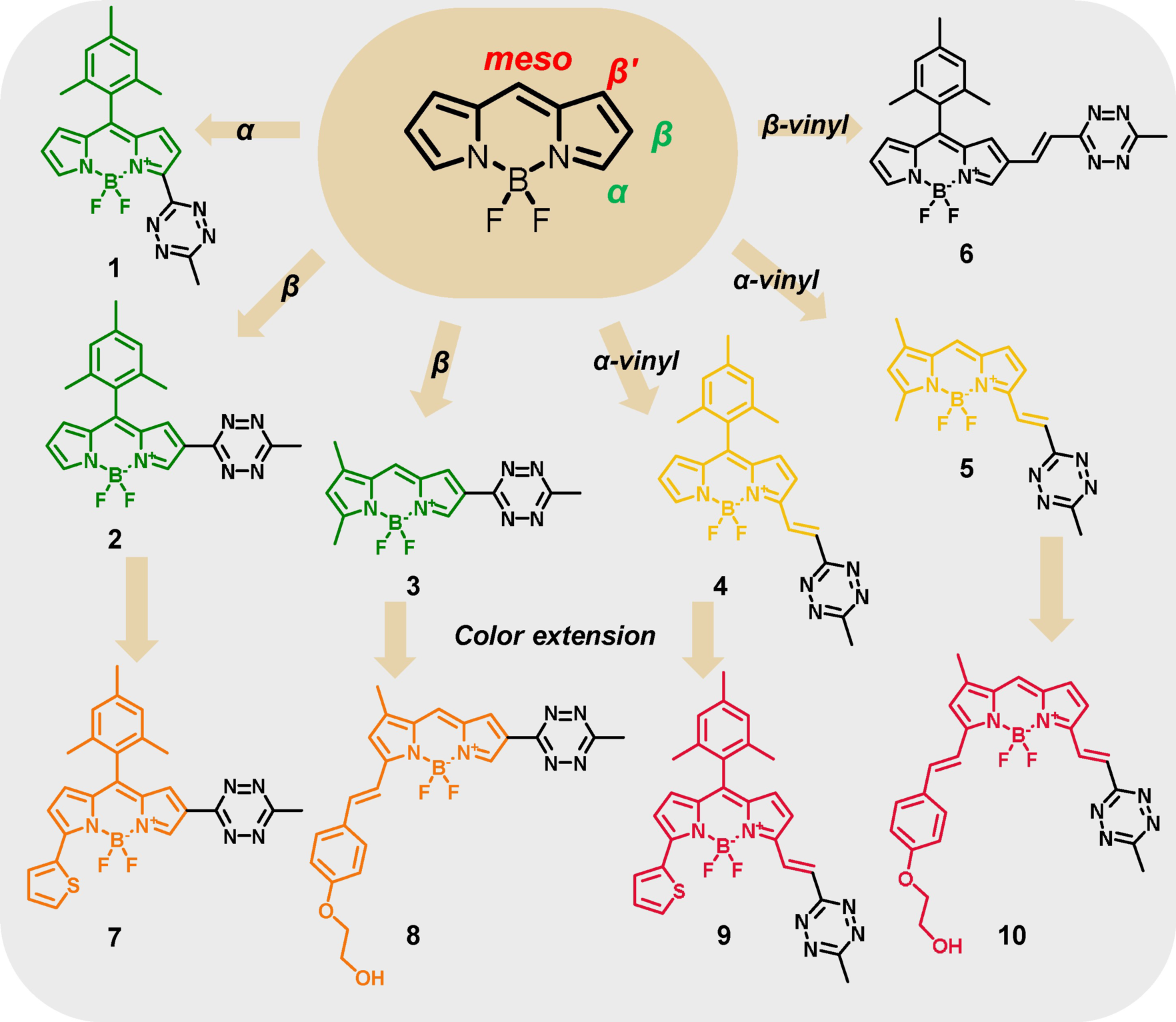 Angew:熒光增強(qiáng)單發(fā)色團(tuán)型氟硼吡咯-四嗪染料用于雙色生物正交成像