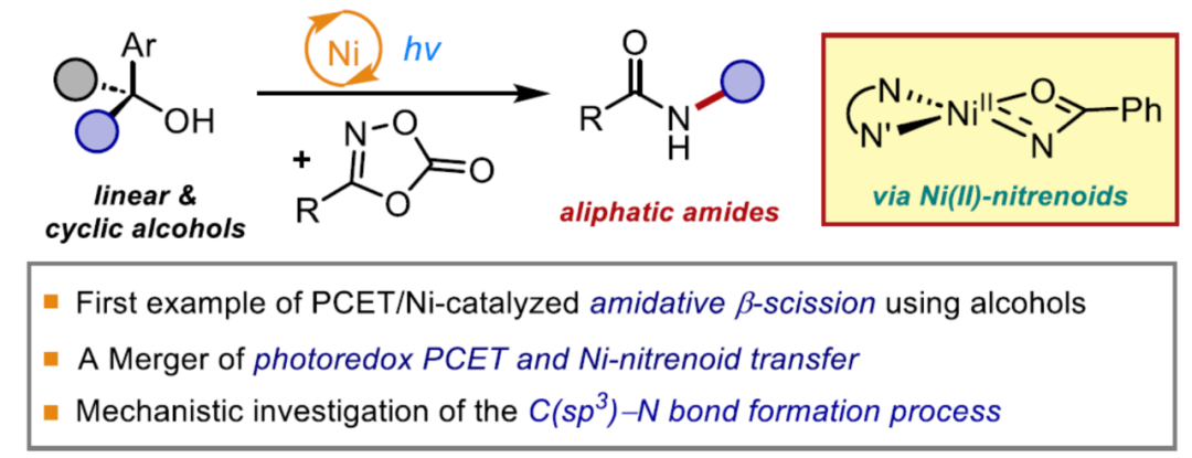 近日,韓國(guó)科學(xué)技術(shù)院Sukbok Chang課題組提出了一種新的機(jī)理途徑,利用二噁唑酮作為Ni(II)-類氮賓(nitrenoid)前體,通過將質(zhì)子耦合電子轉(zhuǎn)移(proton-coupled elec...