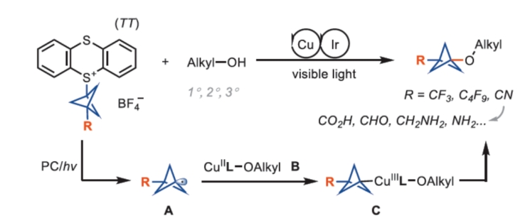 近日,德國馬克斯普朗克煤炭研究所Tobias Ritter課題組首次報道了一種由醇合成雙環(huán)[1.1.1]戊基(BCP)烷基醚的方法。其中,該反應使用了BCP-噻蒽鎓試劑,并在雙重銅/光氧化還原催化體系...