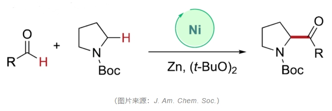 近日,美國密歇根大學Paul M. Zimmerman與John Montgomery課題組報道了一種α-氨基C(sp3)-H鍵與醛類化合物的氧化交叉脫氫偶聯(lián)反應,合成了一系列酮衍生物。其中,該反應使...