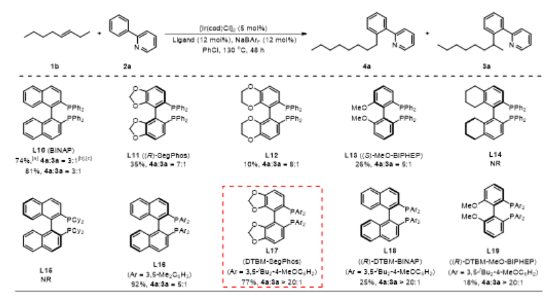近日,上海交通大學(xué)張萬斌教授課題組設(shè)計了一種由配體控制的銥催化烯烴遠(yuǎn)端位點可調(diào)控氫芳基化反應(yīng),以良好的產(chǎn)率和良好至優(yōu)異的位點選擇性得到官能化在烷基鏈上次末端亞甲基和末端甲基位置的芳基化產(chǎn)物,相關(guān)研究工...