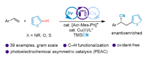 近日,廈門大學(xué)徐海超教授課題組在Journal of the American Chemical Society上報道了光電不對稱催化新方法,實現(xiàn)了不對稱烯烴雜芳基氰化反應(yīng),文章鏈接:doi.org/...