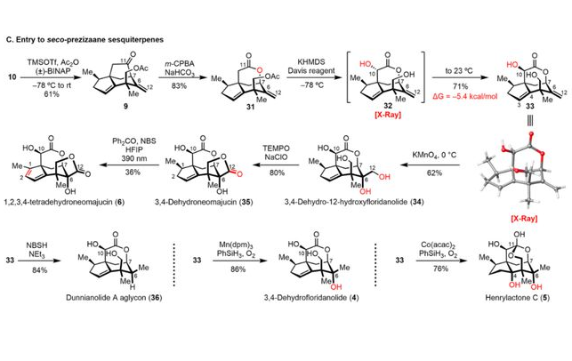 廈門大學(xué)化學(xué)化工學(xué)院張延?xùn)|教授課題組一直致力于八角屬活性倍半萜的不對稱全合成研究,分別在2015年和2021年報道了Jiadifenolide的不對稱全合成(Org. Lett.2015, 17, 5...