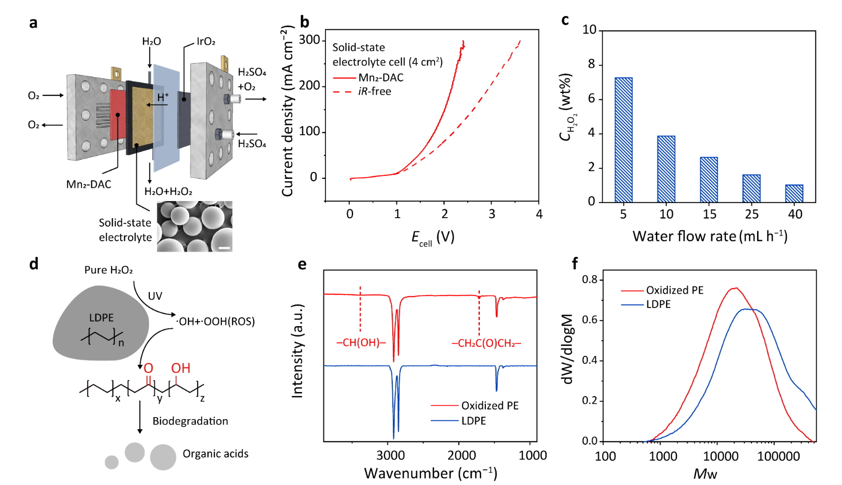 本研究報道了一種具有高自旋Mn2?雙原子中心的催化劑(Mn?-DAC),該催化劑在酸性條件下實現(xiàn)了高選擇性(>90%)、高電流密度(300 mA cm?2)、超長穩(wěn)定性(240 h)下的過氧化氫電合成...
