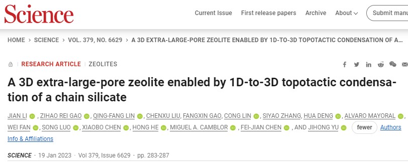 首例具有全連接三維超大孔道穩(wěn)定結(jié)構(gòu)的純硅分子篩,是迄今為止已知的密度最小的二氧化硅多晶型,它的成功創(chuàng)制是超大孔純硅分子篩合成領(lǐng)域的一項重要突破...