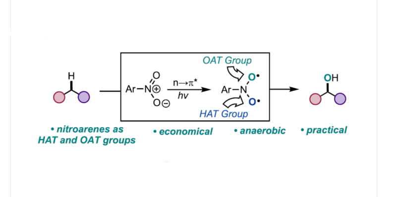 近日,美國紐約大學(xué)Marvin Parasram課題組報道了一種光激發(fā)硝基芳烴介導(dǎo)脂肪族化合物的無氧C-H羥基化反應(yīng)。其中,光激發(fā)硝基芳烴具有雙重性質(zhì),可充當(dāng)C-H鍵的活化劑和氧原子源。與前期報道的方...