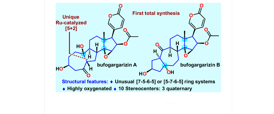 近日,南方科技大學(xué)李闖創(chuàng)教授團(tuán)隊,發(fā)展了獨特的釕催化VECP [5+2]環(huán)加成反應(yīng),并以此為關(guān)鍵策略,實現(xiàn)了具有挑戰(zhàn)性的蟾蜍甾醇 bufogargarizin A的首次全合成;同時,從共同的中間體出發(fā)...