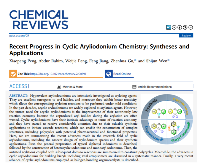 近日,贛南醫(yī)學(xué)院的研究人員與中山大學(xué)及中國科學(xué)技術(shù)大學(xué)合作在Chemical Reviews上發(fā)表“Recent Progress in Cyclic Aryliodonium Chemistry: ...