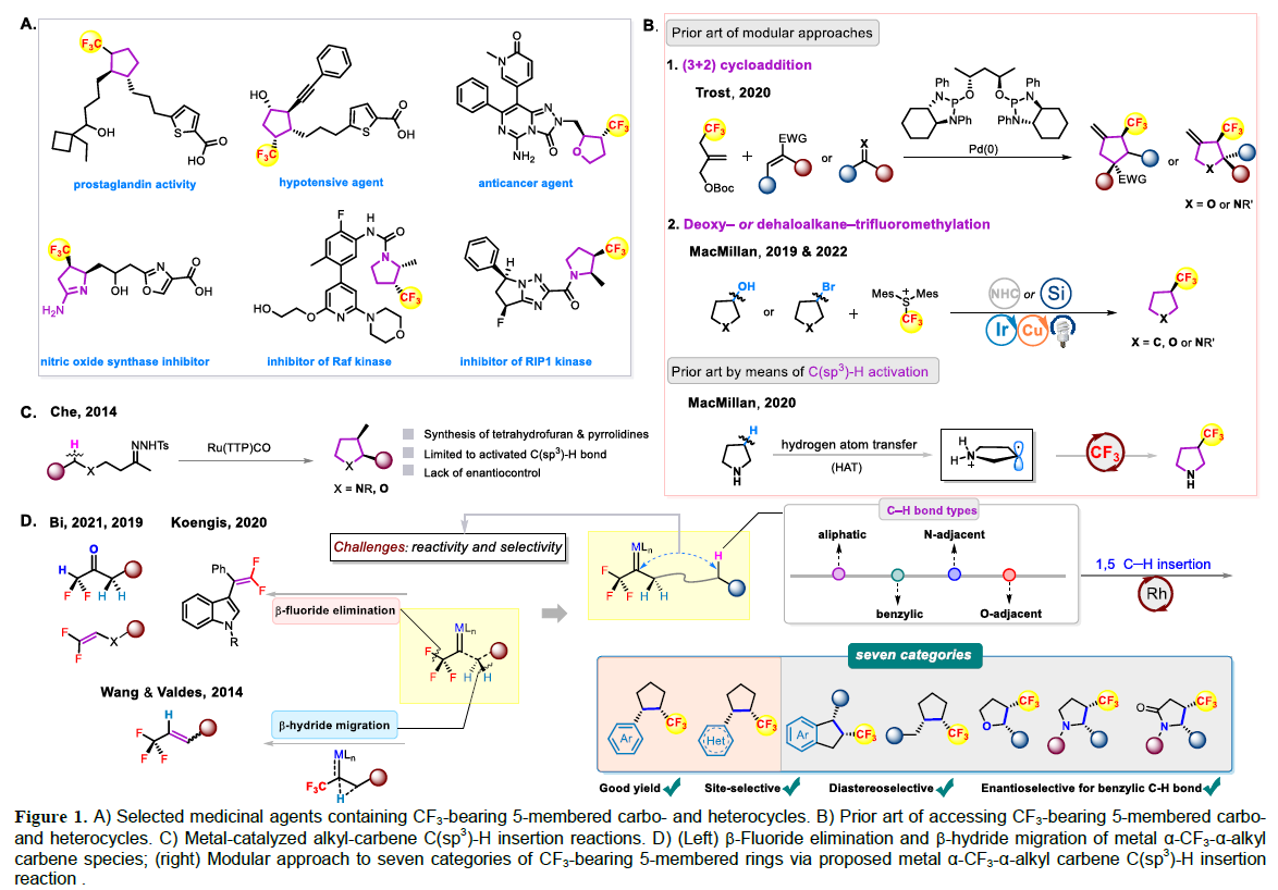 近日,香港大學(The University of Hong Kong)支志明院士課題組利用銠催化,α-三氟甲基-α-烷基卡賓插入C(sp3)-H鍵實現(xiàn)了七類三氟甲基官能團化的飽和五元環(huán)化合物的合成。...
