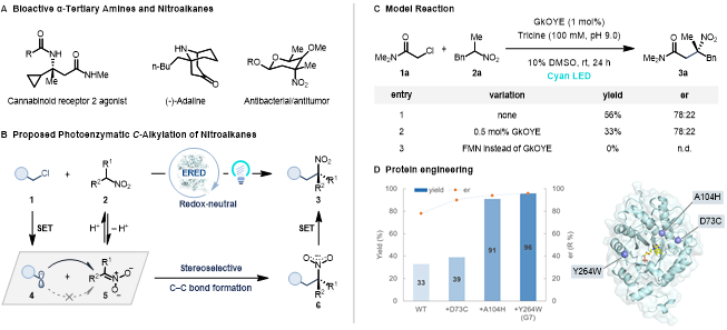 生物催化以高效、高選擇性、易進化著稱,美國康奈爾大學的Todd Hyster教授課題組的研究者嘗試采用生物催化的方法來實現(xiàn)對硝基化合物的不對稱C-烷基化反應。盡管已有許多酶催化的共軛加成或亨利反應可以...