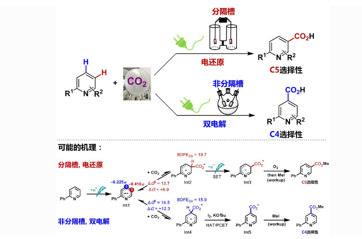 四川大學化學學院余達剛課題組與美國康奈爾大學林松課題組合作在Nature發(fā)表論文,實現(xiàn)電解池調(diào)控CO2參與的氮雜芳烴區(qū)域選擇性羧基化...