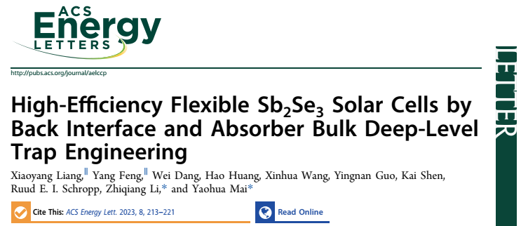近日,暨南大學新能源技術研究院麥耀華教授團隊在高效柔性硒化銻太陽電池研究方面取得重要進展,相關結果發(fā)表于領域內(nèi)知名期刊ACS Energy Letters (影響因子: 23.991),第一作者為暨南...