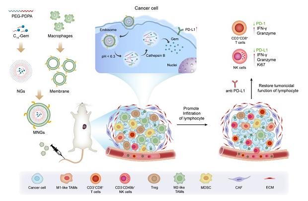 近日,中國科學院上海藥物研究所李亞平團隊、復旦大學藥學院張志文團隊與上海交通大學藥學院張翱團隊合作,設計并構建了一種負載吉西他濱前藥的智能仿生遞藥系統(tǒng)(MNGs),用于提高瘤內(nèi)淋巴細胞的浸潤并進一步提...