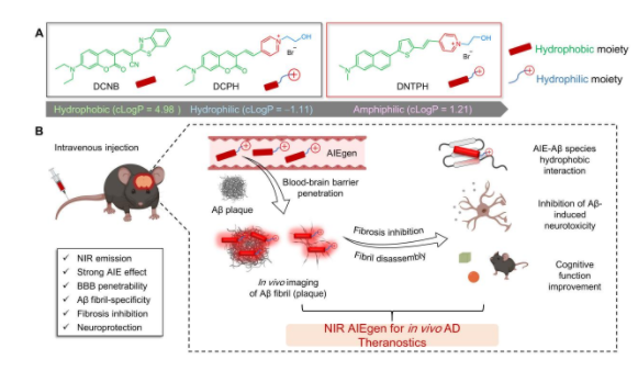 河南省腦靶向生物納米藥物重點(diǎn)實驗室聚焦復(fù)雜腦部疾病的診療研究。日前,實驗室有關(guān)“新型AIE在阿爾茨海默癥的體內(nèi)診療一體化體系應(yīng)用”研究取得最新進(jìn)展,研究結(jié)果以 “Near-Infrared Aggre...