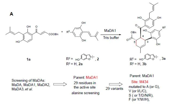 2022年11月16日,雷曉光課題組在在Cell Press細(xì)胞出版社期刊Chem Catalysis 上報道了針對D-A酶MaDA1的蛋白工程改造,并通過將酶催化的D-A反應(yīng)與金屬催化脫羧官能團(tuán)化反...