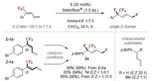 近日,明斯特大學(xué)Ryan Gilmour課題組首次實現(xiàn)了碘催化的三氟甲基取代的1,3-二烯的區(qū)域選擇性1,4-二氟化反應(yīng)。該反應(yīng)官能團(tuán)兼容性好、區(qū)域選擇性佳、使用范圍廣且易于進(jìn)行后期的修飾與轉(zhuǎn)化,對有...