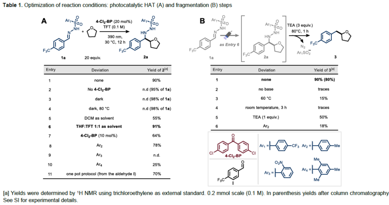 近日,荷蘭阿姆斯特丹大學(xué)Timothy No?l課題組報道了一種高效的C(sp3)-C(sp3)偶聯(lián)策略,其中涉及二芳基酮促進(jìn)光催化氫原子轉(zhuǎn)移以及烷基化酰肼的斷裂過程,可將N-磺酰腙和C(sp3)-H...
