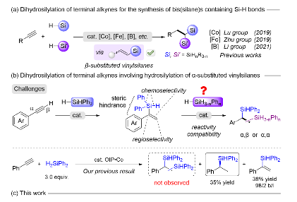 有機(jī)硅化合物在有機(jī)化學(xué)和材料科學(xué)領(lǐng)域中發(fā)揮著重要作用。其中,含有兩個硅基的二硅化合物與單硅化合物相比,具有雙官能反應(yīng)性和潛在的獨特應(yīng)用。近日,浙江大學(xué)化學(xué)系陸展課題組通過串聯(lián)催化策略,首次實現(xiàn)了鈷催化...