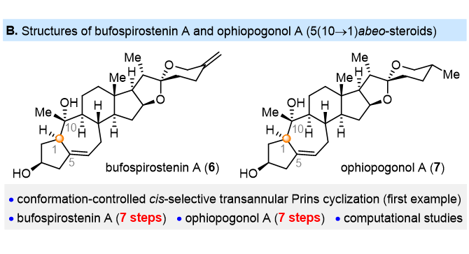 近日,上海有機所桂敬漢課題組與浙江大學洪鑫課題組合作,利用自由基碎裂反應和跨環(huán)Prins環(huán)合反應完成了天然產(chǎn)物bufospirostenin A和ophiopogonol A的合成,總計7步反應,相關...