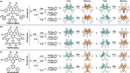 近日,四川大學游勁松教授、賓正楊副研究員團隊發(fā)展了一種基于“空間限制的給受體”策略以提高MR-TADF分子kRISC,在保持較窄發(fā)光半峰寬的前提下,成功將MR-TADF分子的kRISC提高至106 s...