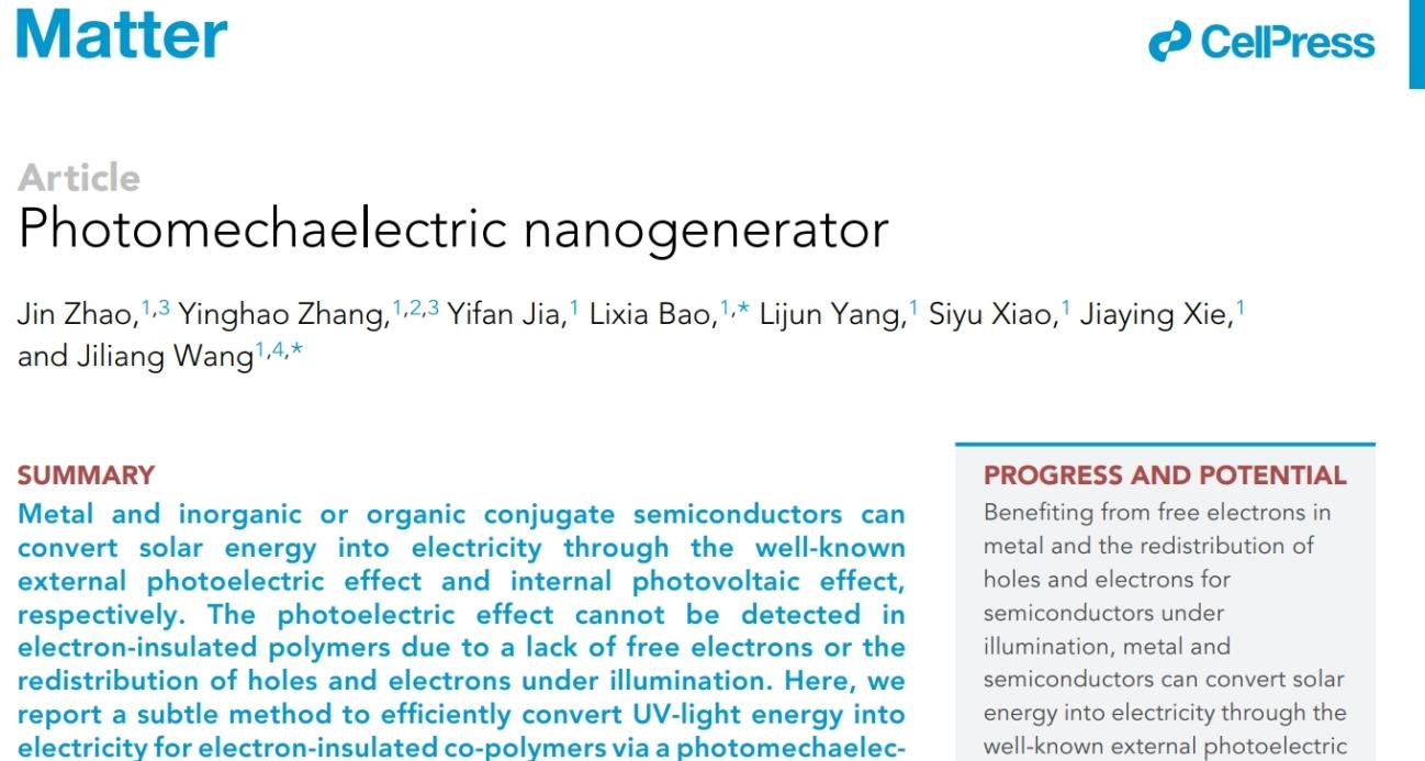近日,云南大學化學科學與工程學院高分子系包黎霞、王繼亮課題組在Cell的姊妹刊Matter上在線發(fā)表了一篇題為“Photomechaelectric Nanogenerator”的Discovery研...