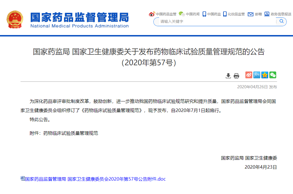 為深化藥品審評審批制度改革,鼓勵創(chuàng)新,進(jìn)一步推動我國藥物臨床試驗規(guī)范研究和提升質(zhì)量,國家藥品監(jiān)督管理局會同國家衛(wèi)生健康委員會組織修訂了《藥物臨床試驗質(zhì)量管理規(guī)范》,現(xiàn)予發(fā)布,自2020年7月1日起施行...