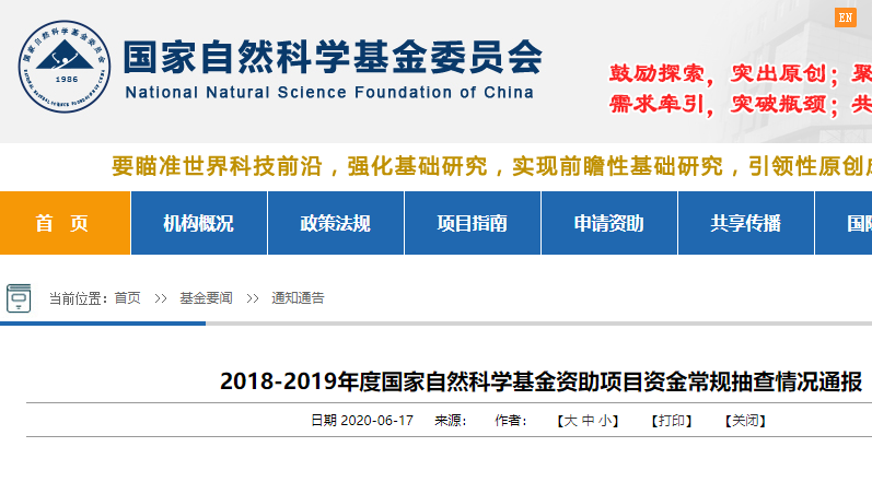 近日,國家自然科學(xué)基金委員會發(fā)布《2018-2019年度國家自然科學(xué)基金資助項目資金常規(guī)抽查情況通報》。...