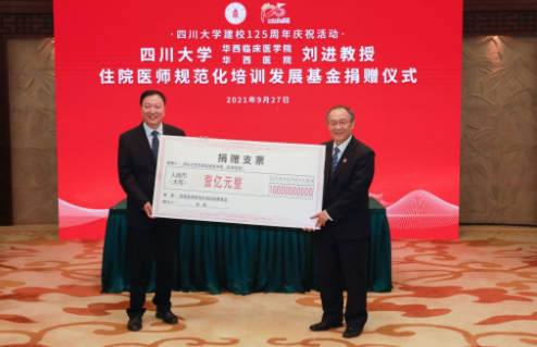 9月27日下午,四川大學(xué)華西醫(yī)院麻醉手術(shù)中心主任劉進(jìn)教授向醫(yī)院捐贈(zèng)1億元,設(shè)立規(guī)培專項(xiàng)基金,用于激勵(lì)住院醫(yī)師、帶教師資,提高住院醫(yī)師臨床能力,這也是我國(guó)首個(gè)由個(gè)人捐贈(zèng)設(shè)立的專項(xiàng)規(guī)培發(fā)展基金。...