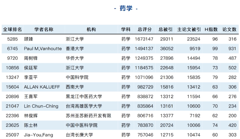 全球?qū)W者庫網(wǎng)站公布了“2023全球?qū)W者學(xué)術(shù)影響力排名(終身學(xué)術(shù)影響力榜)”,該名單中國內(nèi)共有8029人入圍,全球排名1萬以內(nèi)的專家559人,其中藥學(xué)領(lǐng)域位居全球排名10000以內(nèi)的中國學(xué)者名單如下: ...
